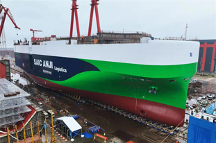 SAIC Motor’s first custom-built ocean-going car carrier ship (RO-RO ship), which was produced by Jiangnan Shipyard (Group) Co, was officially launched on Aug 29.